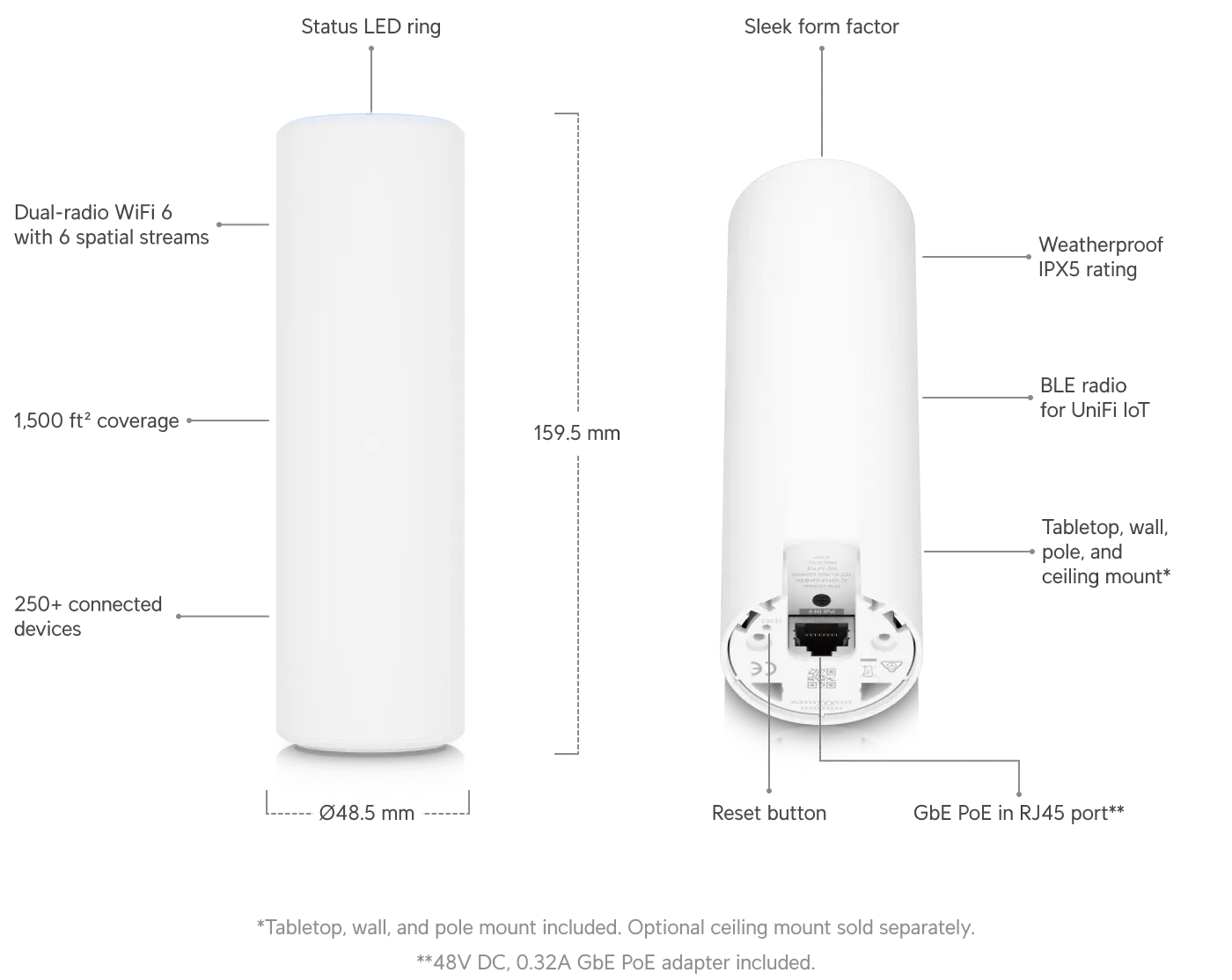The sleek U6 Mesh is discreet enough to stage anywhere in your home or office, but also rugged enough to reliably operate outdoors thanks to its IPX5-rated, waterproof housing.